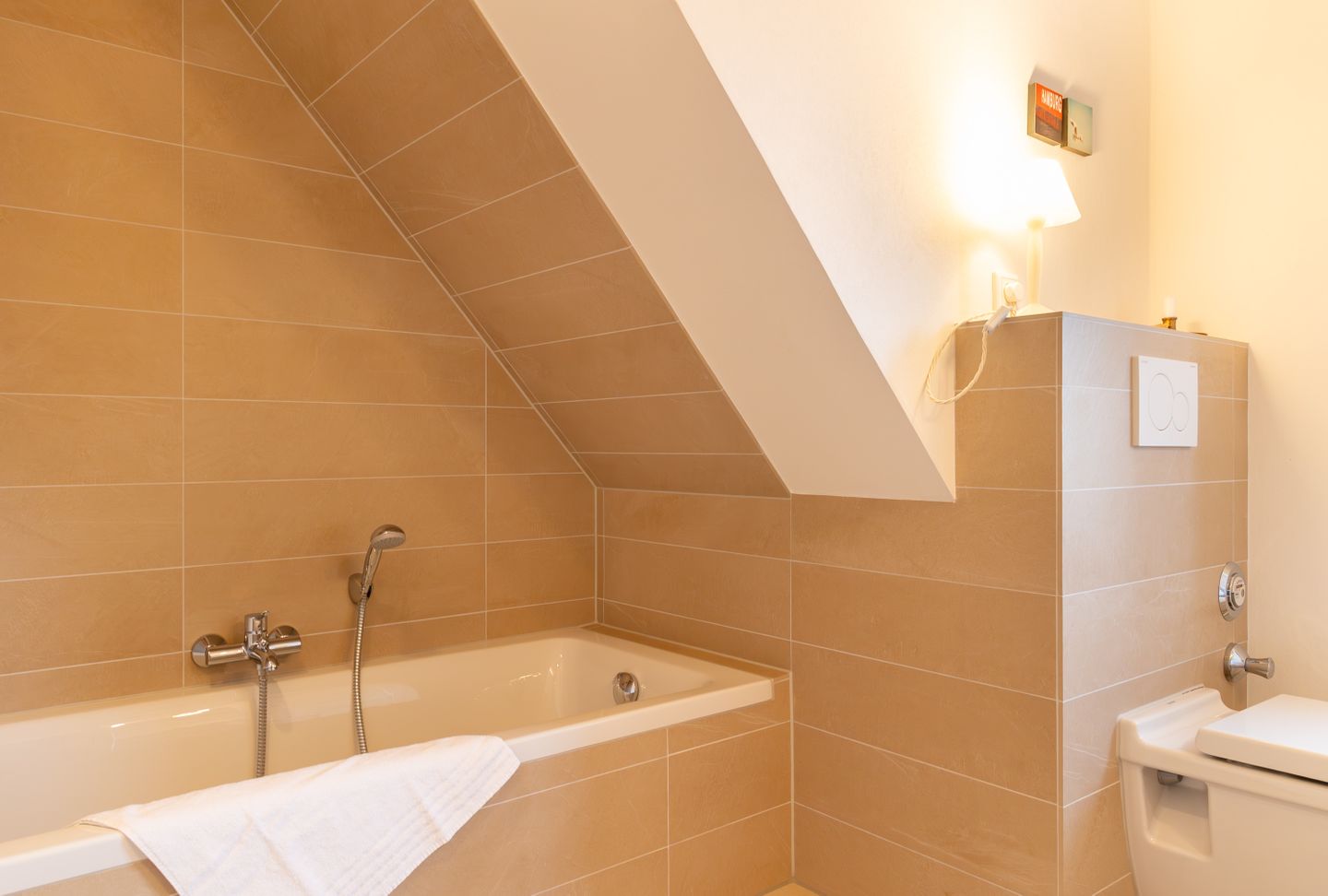 Das Badezimmer verfügt über eine bodengleiche Dusche, eine separate Badewanne, WC, Waschbecken, einen Haartrockner sowie Kosmetik- und Ganzkörperspiegel. Eine Erstausstattung an Verbrauchsmaterialien wird bereitgestellt.