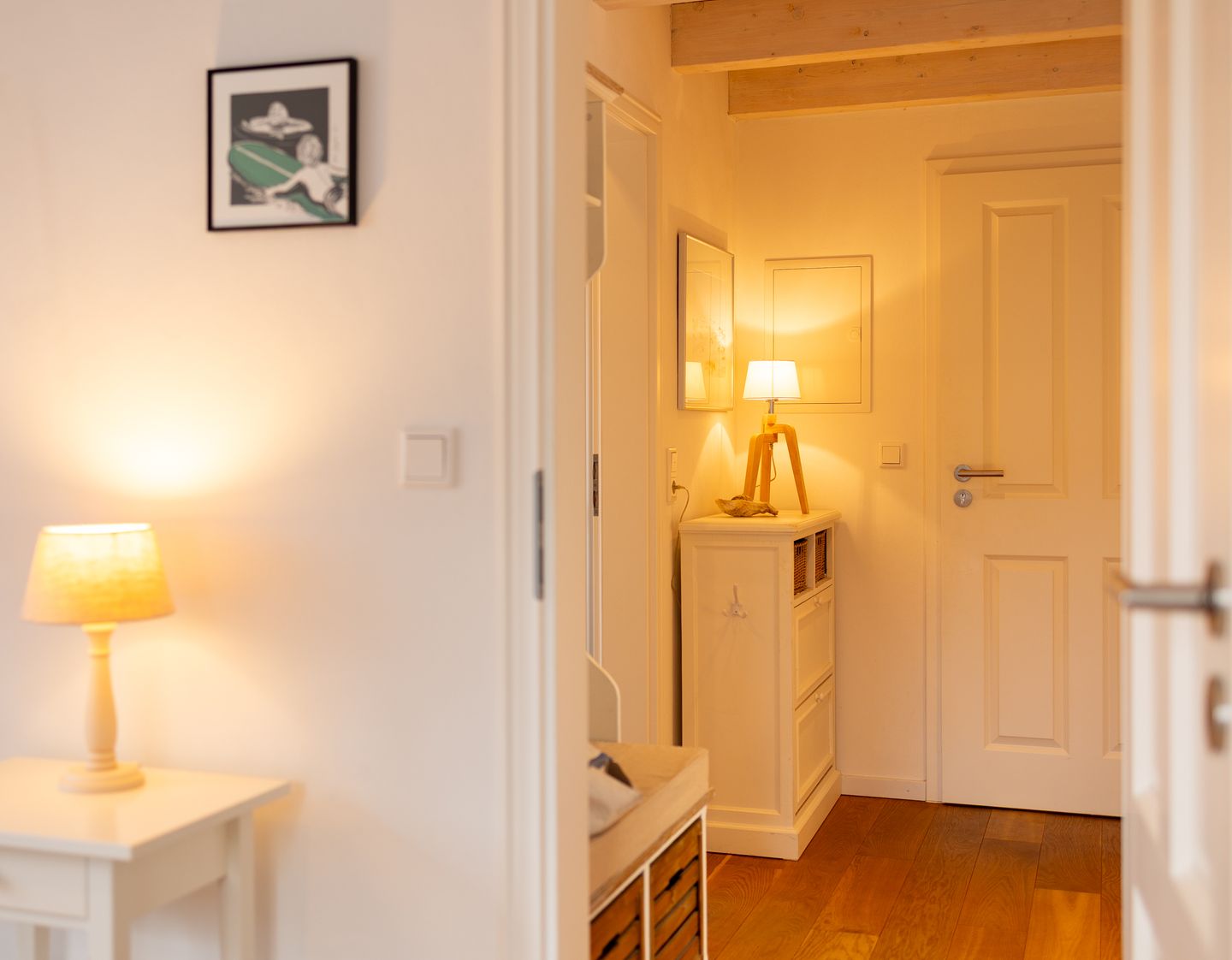 Die Unterkunft verfügt über drei Zimmer und bietet mit zwei Schlafzimmern Platz für bis zu vier Personen. Alle Schlafzimmer und das Wohnzimmer sind mit gepflegtem Parkettboden ausgestattet und bieten ein behagliches Ambiente. Besonders praktisch für Familien sind die vorhandene Kinder- und Babyfreundlichkeit, der Sichtschutz an allen Fenstern sowie zahlreiche kindgerechte Aktivitäten in der Umgebung, wie Spielplätze und Strandangebote.